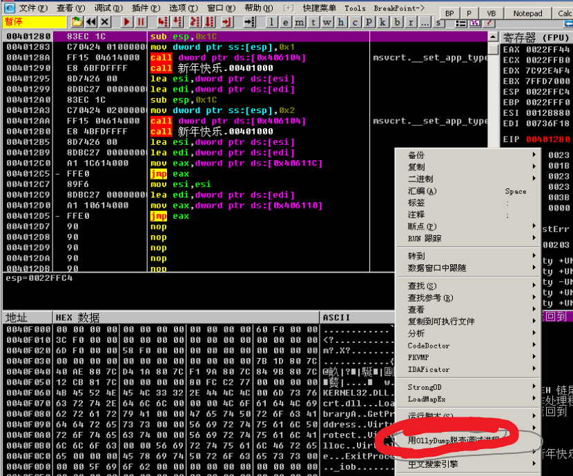 - 在找到OEP对应的位置后可以打开OD自带的脱壳工具生成脱壳文件